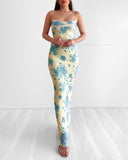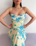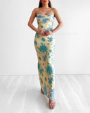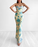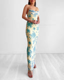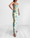 Christina Mesh Bodycon Maxi Dress - Yellow/Blue Floral