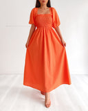 - Straight across neckline with shirring gathering on the bodice