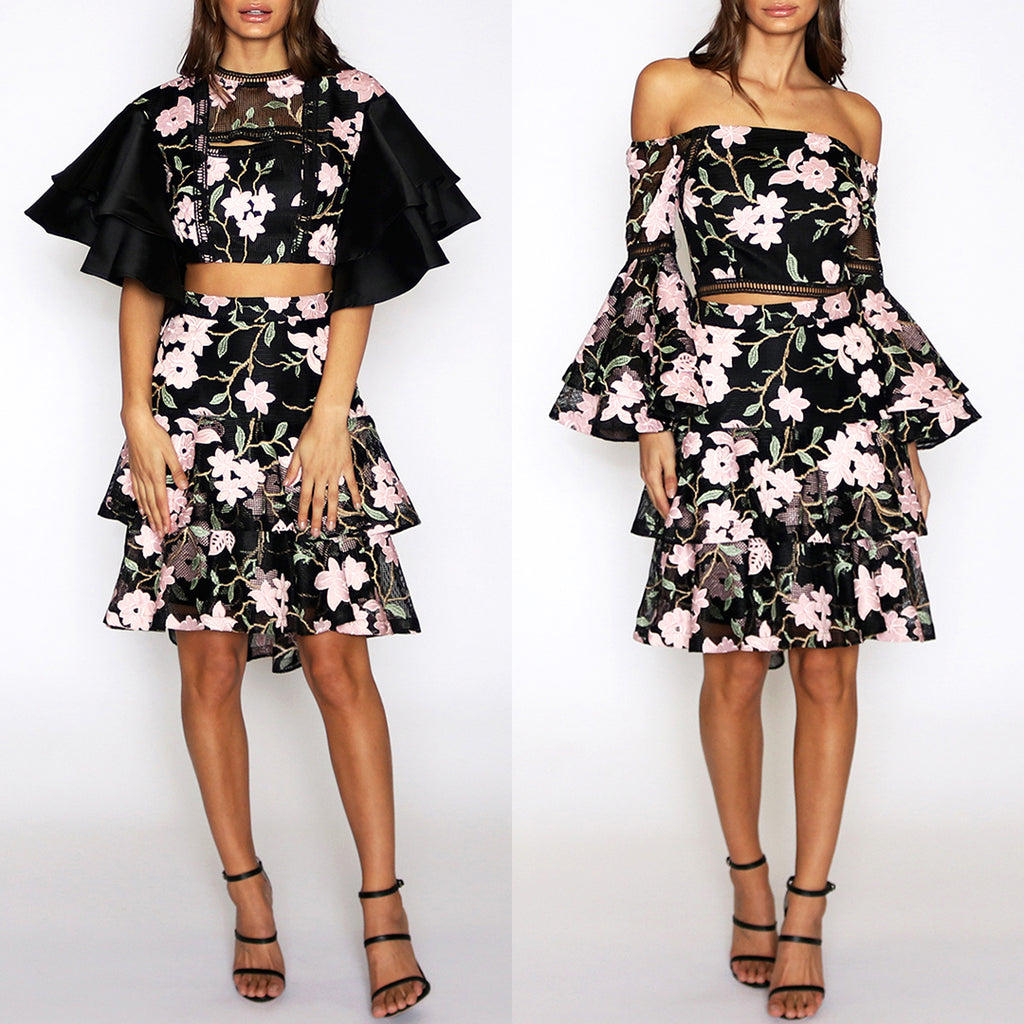 Addison Ruffle Skirt - Black Floral
