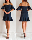 - This dress will be a cute addition to your summer wardrobe. Detailed with a lace trims, a corset front, peplum sleeves and ribbon-tie straps, it's hard not to fall in love with this dress.