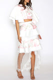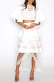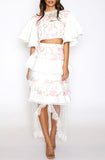The Miranda skirt combines structure, via multiple skirt layers, with a romantic flow via a maxi length sheer pearl layer.