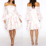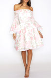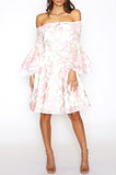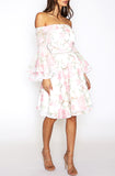Addison Flared Sleeve Dress - White Floral