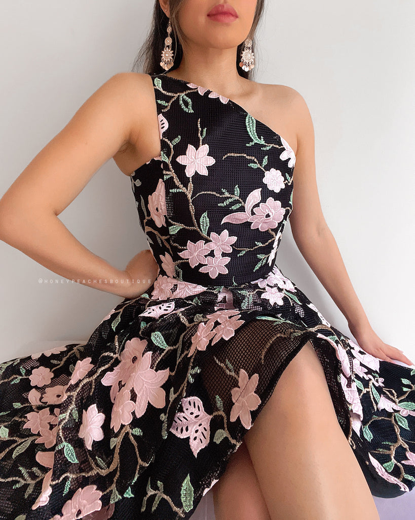 • Addison One Shoulder Dress - Black Floral