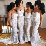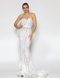 Allegra Strapless Sequin Gown by Jadore - Ivory/Nude