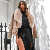 Ivory and Chains best seller the BESSY FUR COLLAR BIKER JACKET is the hottest must have piece going around. Featuring a stunning faux fur collar that will have you turning heads wherever you may be! A great added feature to our Bessy, the faux fur collar is detachable. Also features a beautiful quilted satin lining for extra warmth!