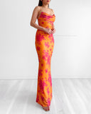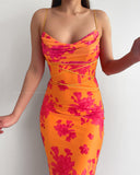 Christina Mesh Bodycon Maxi Dress - Orange/Hot Pink Floral