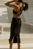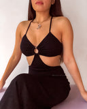 - Halterneck detailing with adjustable ties at the midsection of your back