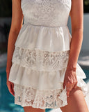 - This 4-layered skirt alternates between lace and fabric ruffles