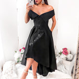MARIJA takes glamour to the next level. Fitted and daring with off shoulder design.