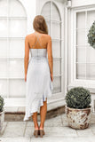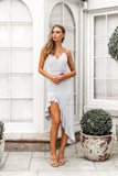 - Asymmetrical skirt that is finished with a gorgeous ruffle