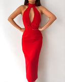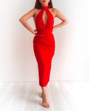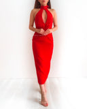 The Natalia dress is the kind of design that exudes confidence and commands attention in the most striking of ways. Cut for a sexy, elongated silhouette and featuring a statement plunging halter-top, it’s the design that says “I have arrived”.