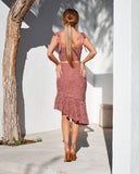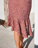 has ribbon-tie straps and is laced with a small but sweet floral trim - Skirt: features centre back concealed zipper, has an asymmetrical hem and is finished off with lace trim as well