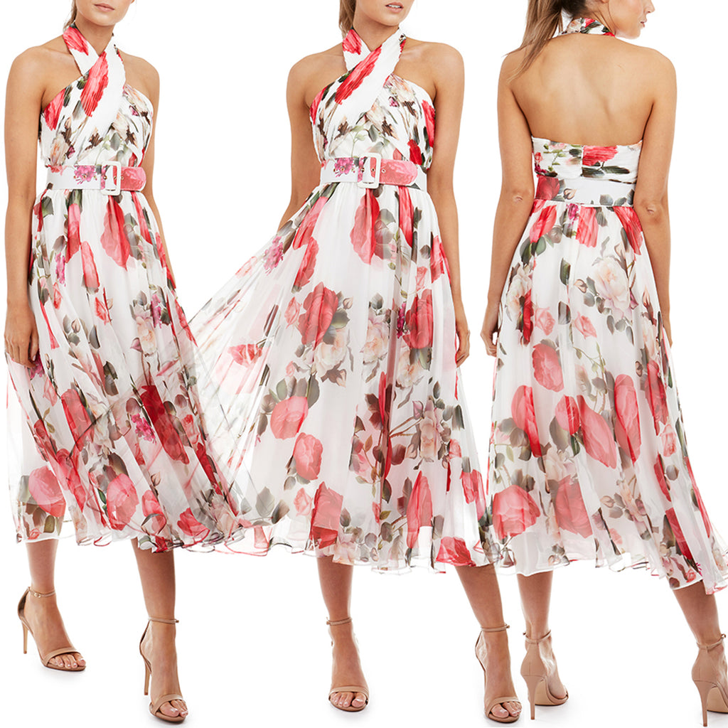 Full skirt halter dress with matching belt, this is the perfect party dress!